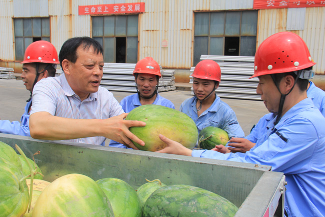 7月16日,新安縣人大副主任、縣總工會(huì)主席王保敏,黨組書(shū)記王新?tīng)I(yíng),副主席梁松獻(xiàn)在集團(tuán)公司總經(jīng)理郭峰,黨委副書(shū)記、工會(huì)主席王宏偉等的陪同下,到萬(wàn)基鋁業(yè)一公司、二公司、萬(wàn)基金屬鈉公司的電解車間等高溫崗位進(jìn)行慰問(wèn),送上西瓜6000余斤,使生產(chǎn)一線員工在炎炎盛夏中感受到了絲絲清涼。