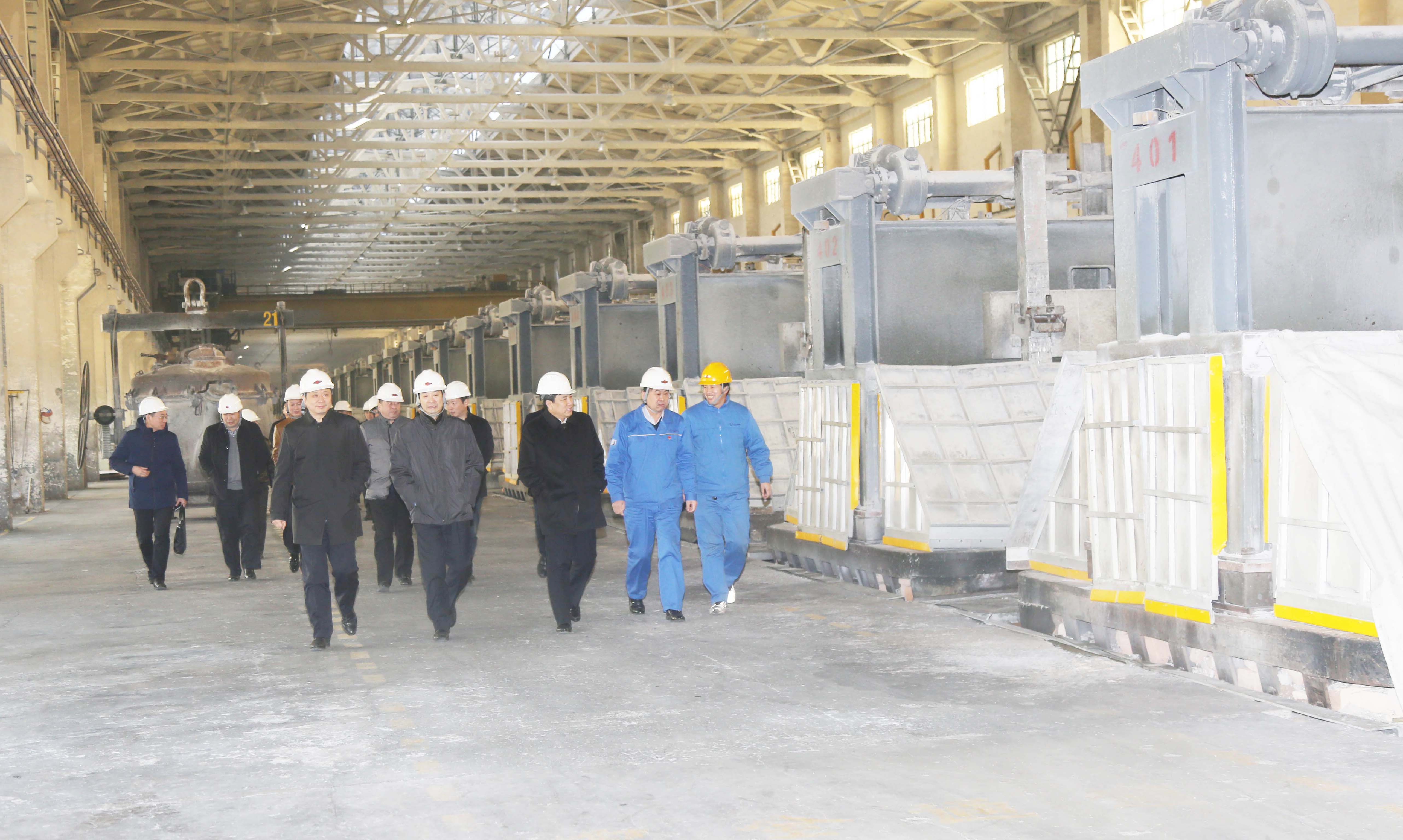 袁劍一行先后到萬(wàn)基鋁業(yè)一公司素車間焙燒工段、電解車間,萬(wàn)基炭素二公司焙燒車間,萬(wàn)基鋁業(yè)二公司電解車間,石墨公司機(jī)加工車間成品展示區(qū),萬(wàn)基鋁加工冷軋車間、鋁箔車間、精整車間等處參觀。每一處,考察團(tuán)一行都認(rèn)真聽(tīng)取企業(yè)負(fù)責(zé)人介紹,詳細(xì)了解公司環(huán)保改造取得的成效。