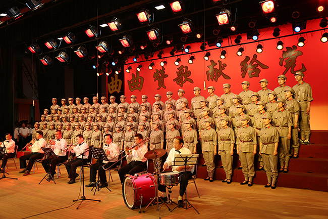 最后,集團(tuán)公司工會(huì)副主席賈志成上臺(tái)指揮,臺(tái)上隊(duì)員和臺(tái)下2000多名觀眾全體起立,共同唱響《沒(méi)有共產(chǎn)黨就沒(méi)有新中國(guó)》,現(xiàn)場(chǎng)紅旗舞動(dòng),歌聲洪亮,將整臺(tái)演出活動(dòng)推向了高潮。