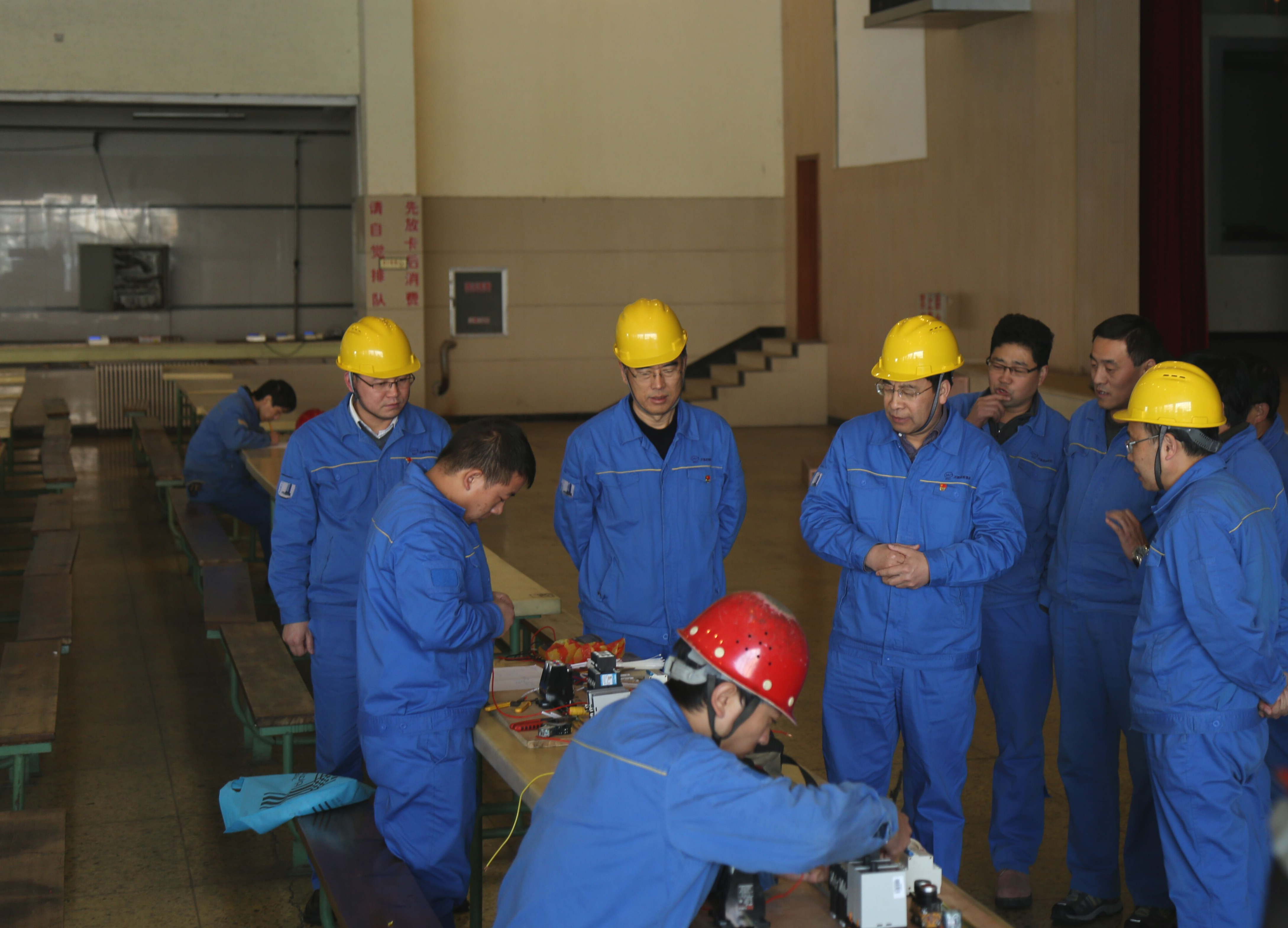 11月23日,集團公司董事長李躍民、黨委副書記王宏偉、總工王瑞奇電工、鉗工晉級實踐考試現(xiàn)場察看。