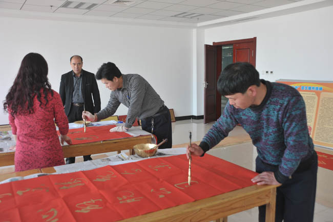 2月9日,集團(tuán)公司工會春聯(lián)征集活動結(jié)束,共收到征聯(lián)近200幅,經(jīng)過評選,28人獲得獎勵。2月10日至13日,組織多名愛好書法者在集團(tuán)公司、萬基一小區(qū)、萬基花園開展義寫春聯(lián)活動,共書寫2000多幅,受到員工及家屬好評。