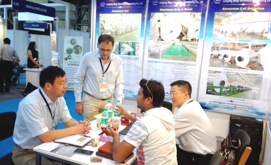 印度擁有巨大的人口數(shù)量和廣闊的市場空間,今后將作為萬基鋁板帶箔產(chǎn)品國際市場開發(fā)的重點之一。此次參加展會,萬基控股集團同V GOLD INTERNATIONAL等眾多終端用戶和采購商進行了深入細致的洽談,同時應邀對多個大的終端客戶進行了實地走訪。
