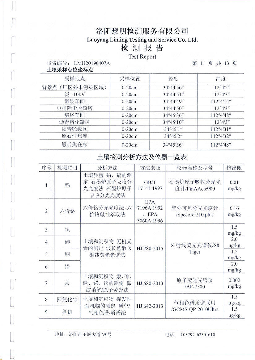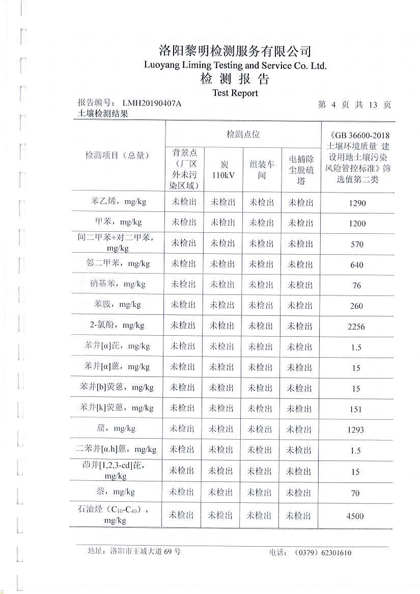 河南萬基炭素有限公司(一分廠)土壤檢測報(bào)告公示