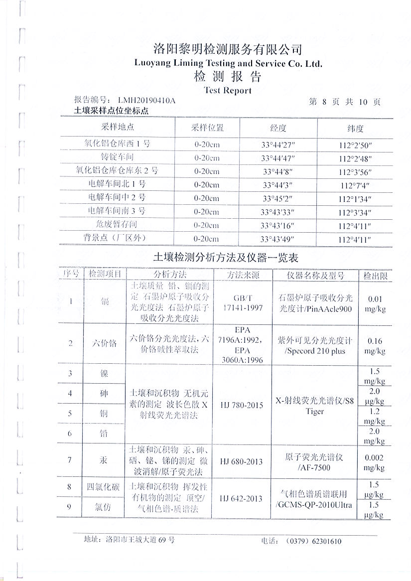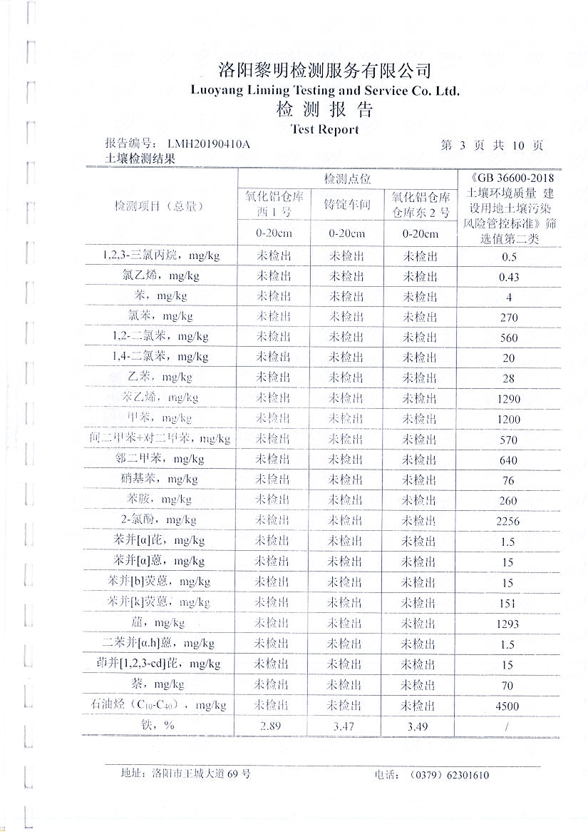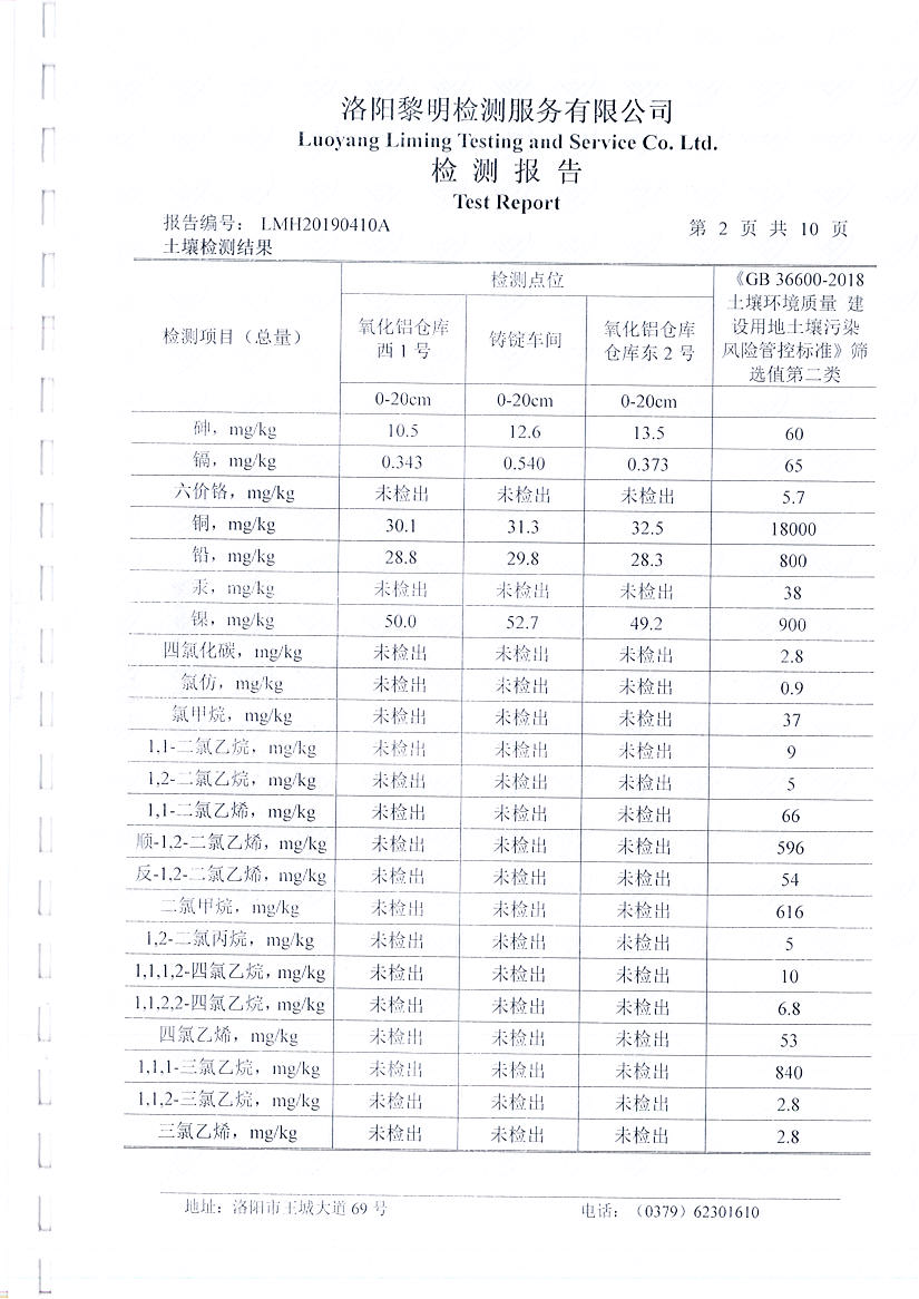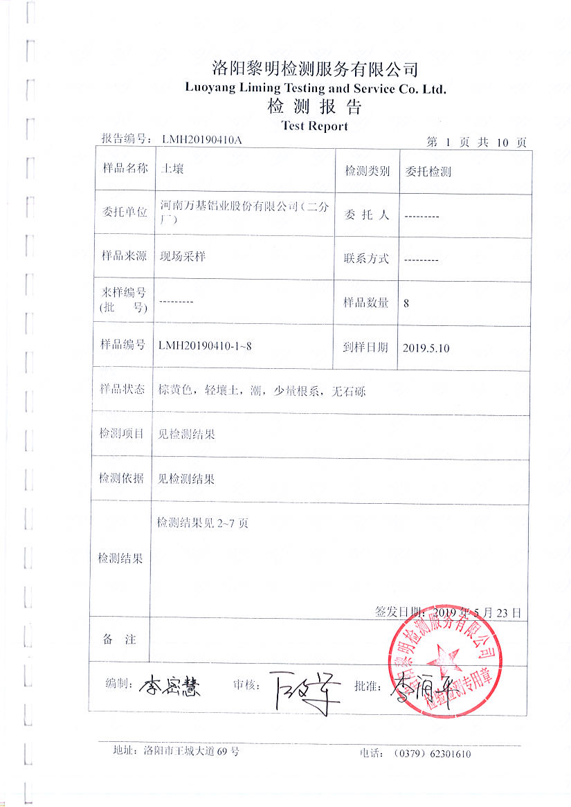 河南萬基鋁業(yè)股份有限公司(二分廠)土壤檢測報告公示