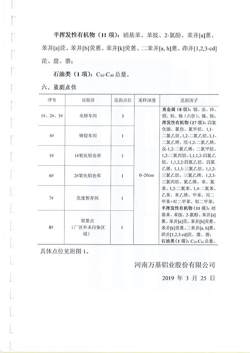 河南萬基鋁業(yè)股份有限公司(二分廠)2019土壤自行檢測方案