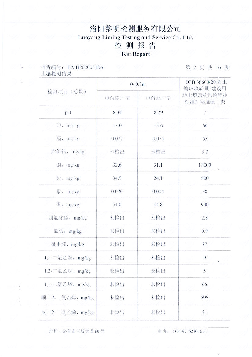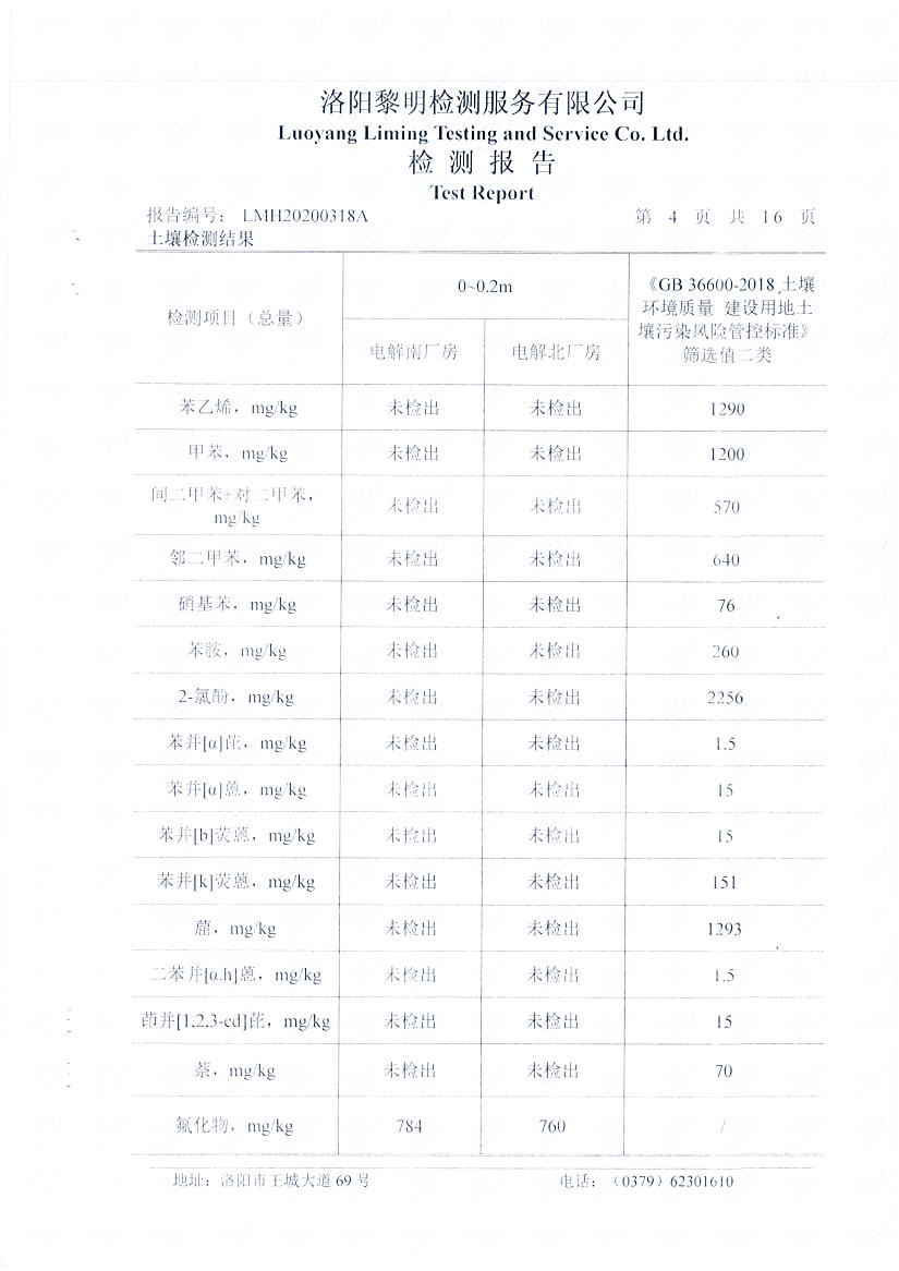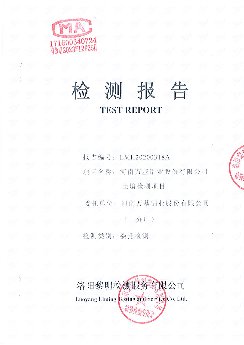 河南萬基鋁業(yè)股份有限公司(一分廠)2020土壤自行檢測(cè)報(bào)告