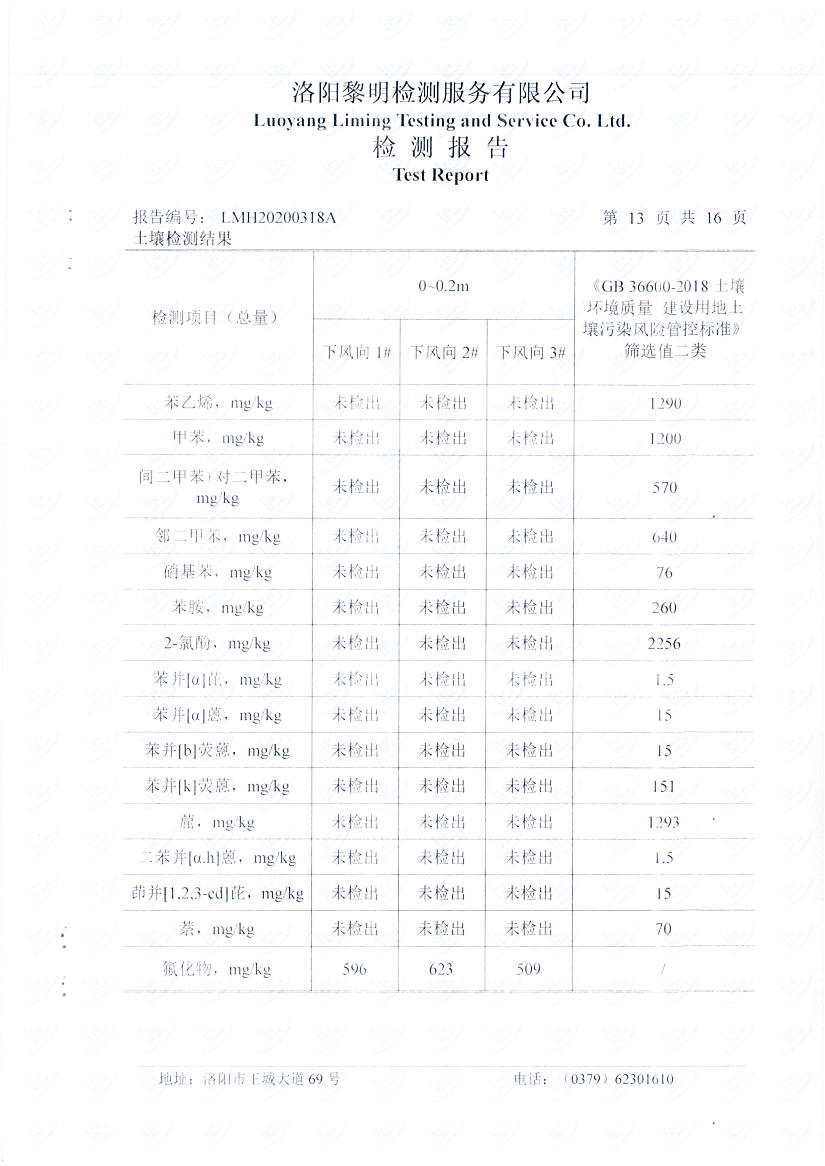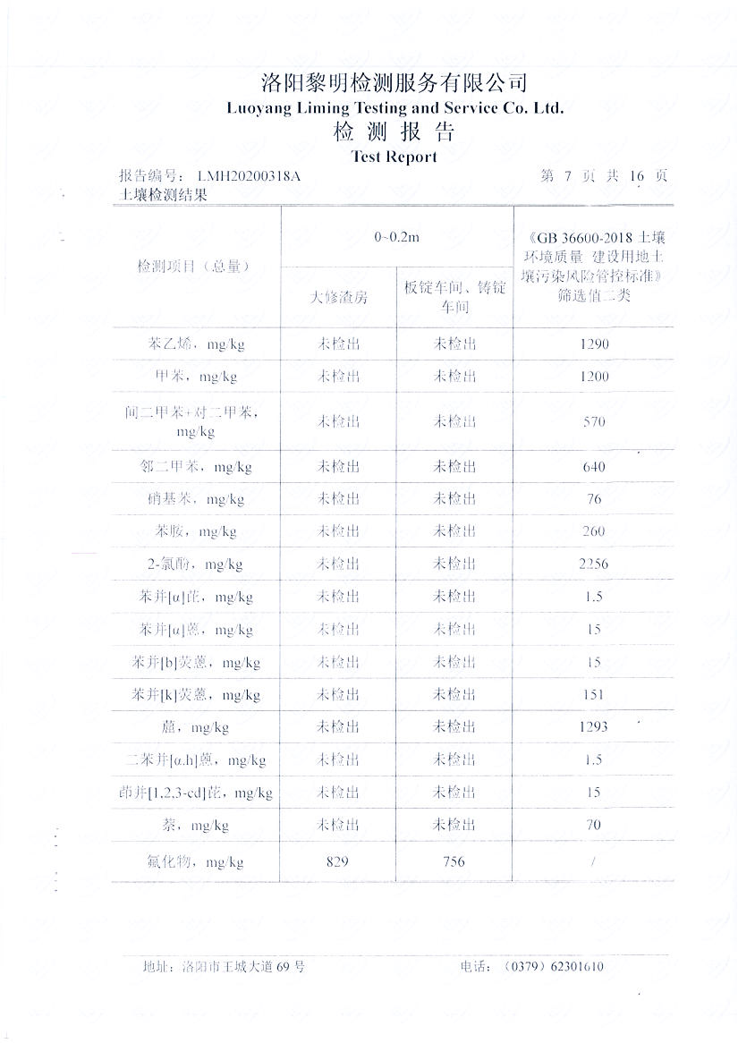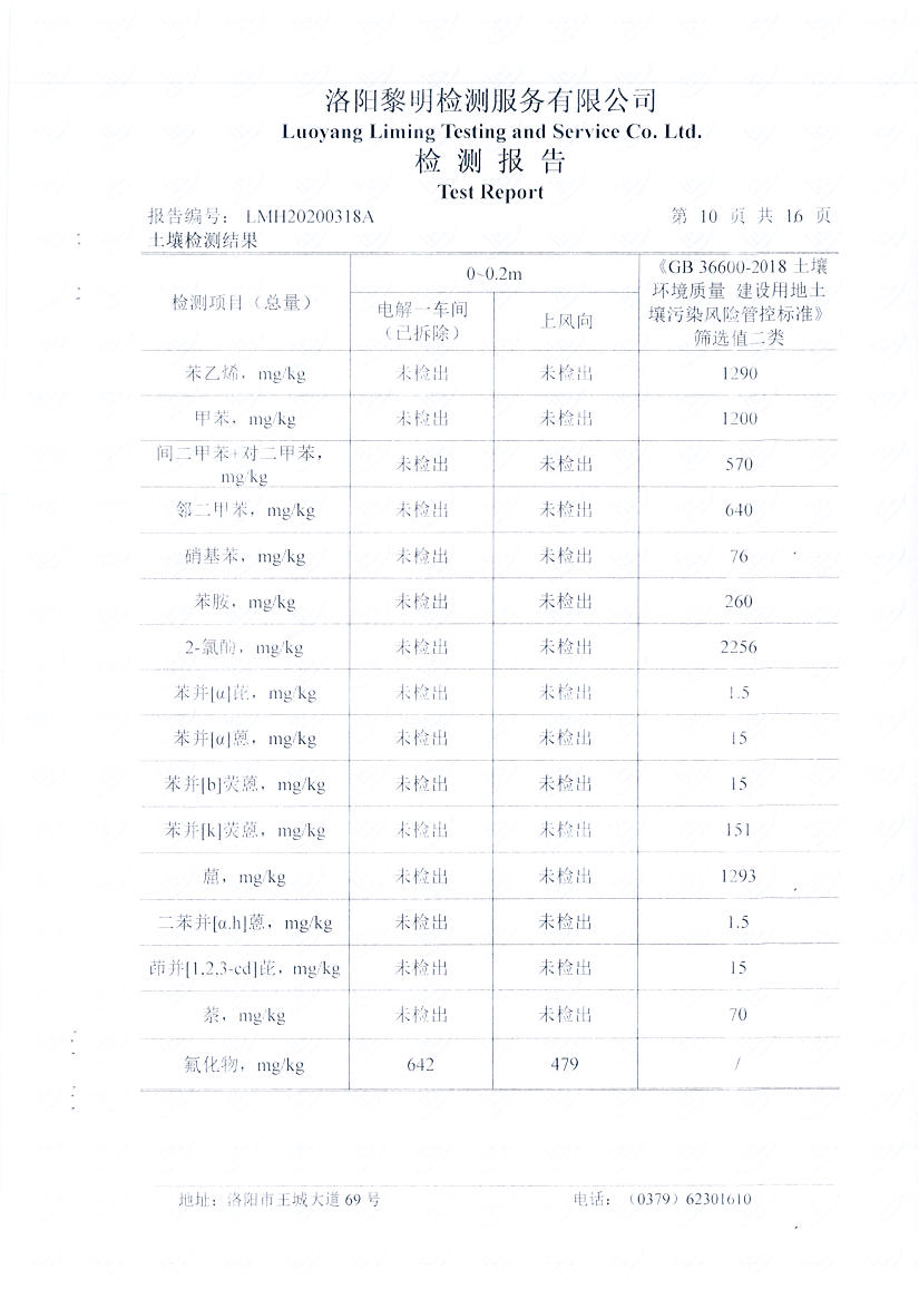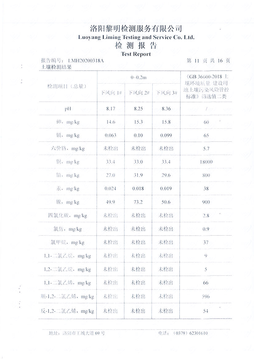 河南萬基鋁業(yè)股份有限公司(一分廠)2020土壤自行檢測(cè)報(bào)告