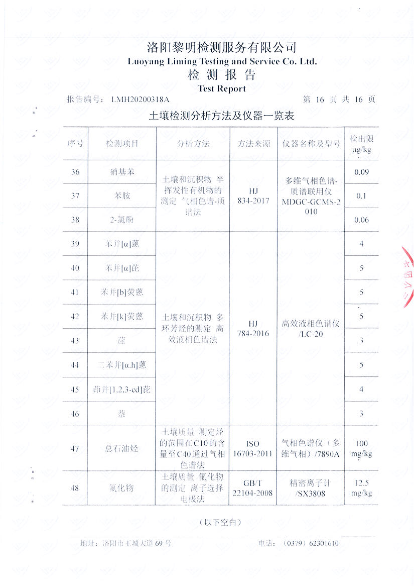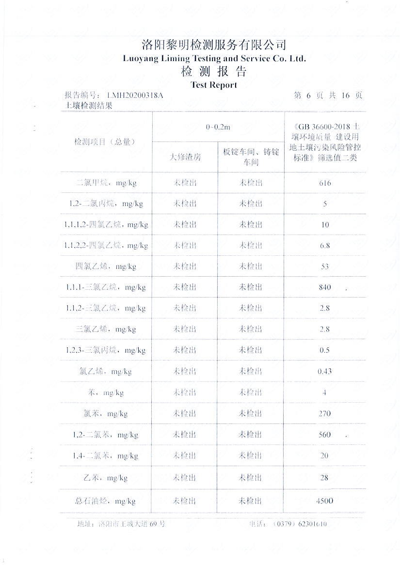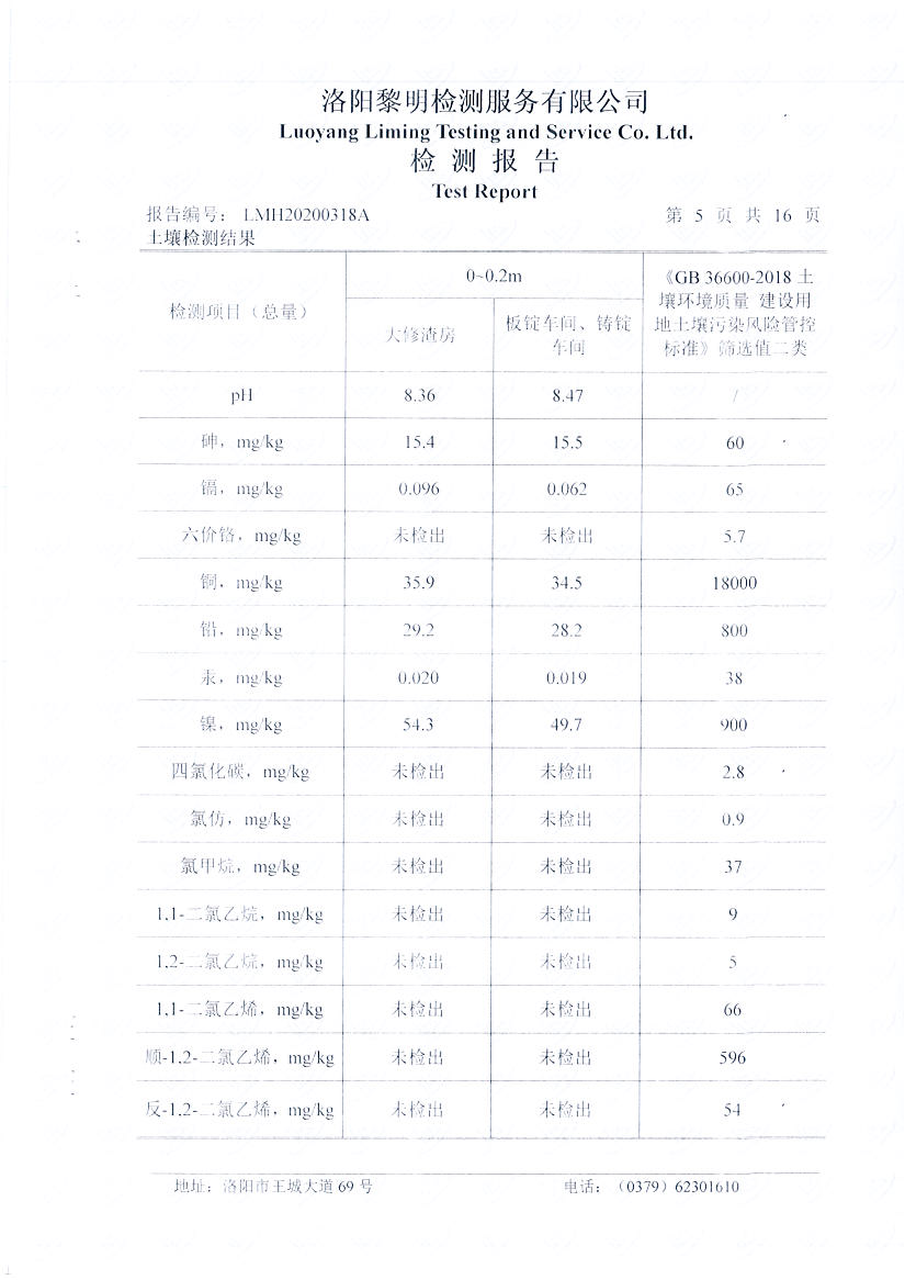 洛陽(yáng)萬基鋁加工有限公司2019年土壤自行檢測(cè)方案