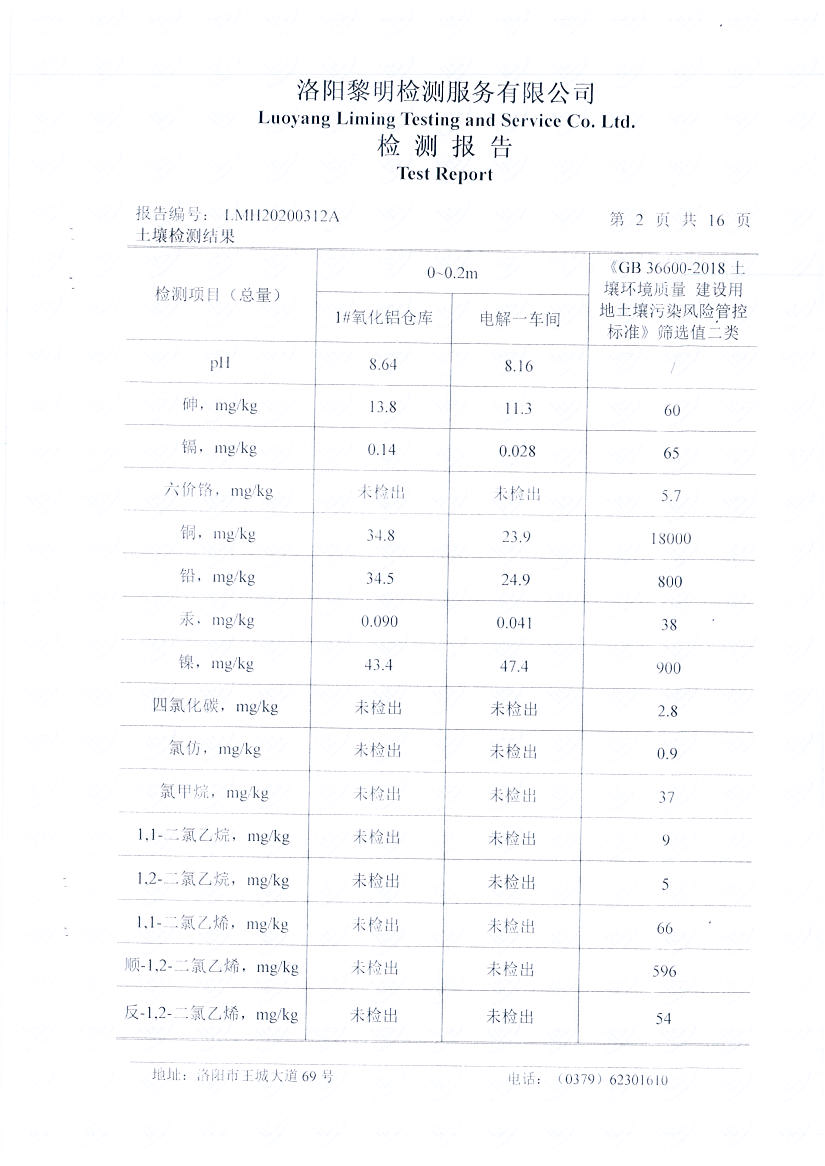 河南萬基鋁業(yè)股份有限公司(二分廠)2020土壤自行檢測報告